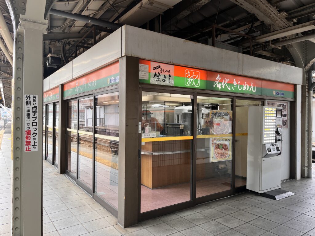 「きしめん 住よし」は屋号に「名古屋駅〇〇ホーム」がズラリ。どのホームで待ってもお店は出迎えてくれる。巷では「どのホームで提供されるきしめんが美味いんだ?!」論争もあるようで、ネットでは「5•6番ホームのお店では各店舗の天ぷらを揚げているぞ!」の情報を入手。乗る予定の新幹線にも少し余裕があるので、敢えて在来線ホームのきしめん屋へ向かうことに!