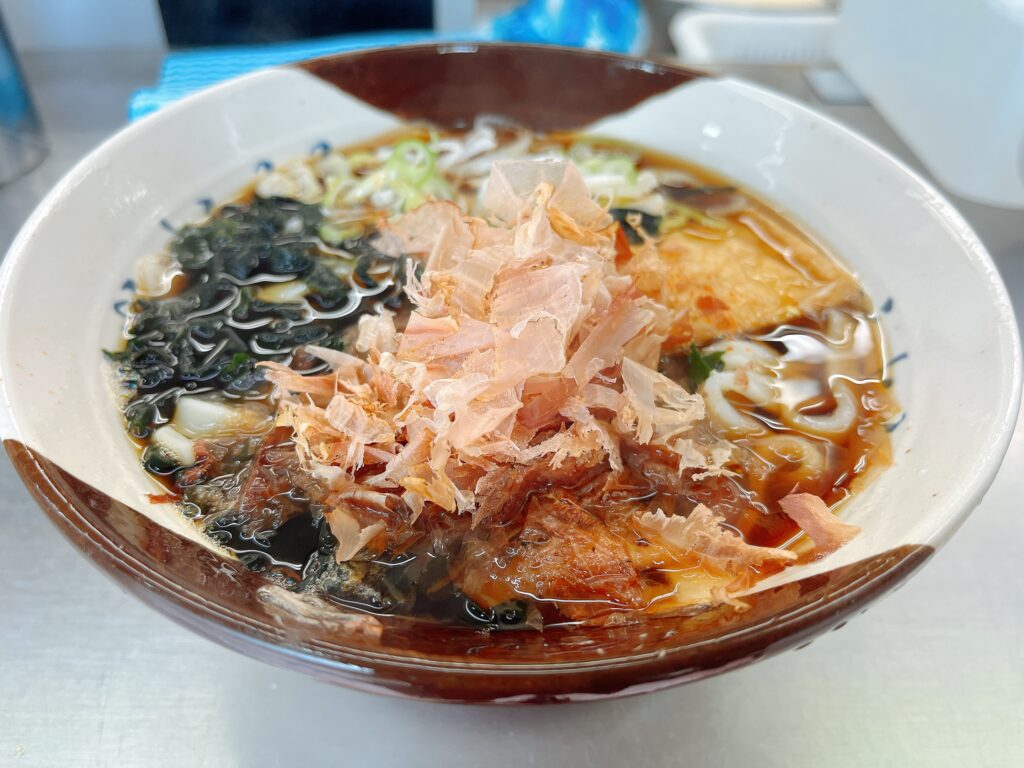 この見た目、500円なのにわかめと鰹節がてんこ盛りでめっちゃ美味そう!東京へ移動する前の腹ごしらえってことでいただきます!